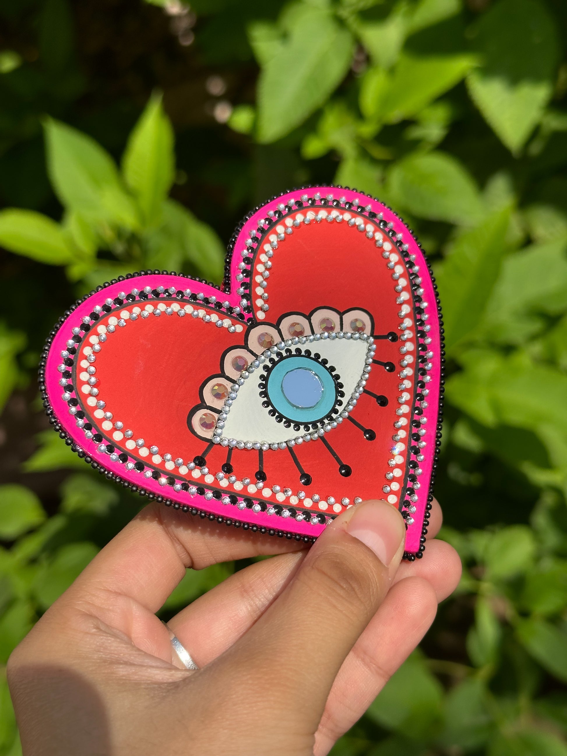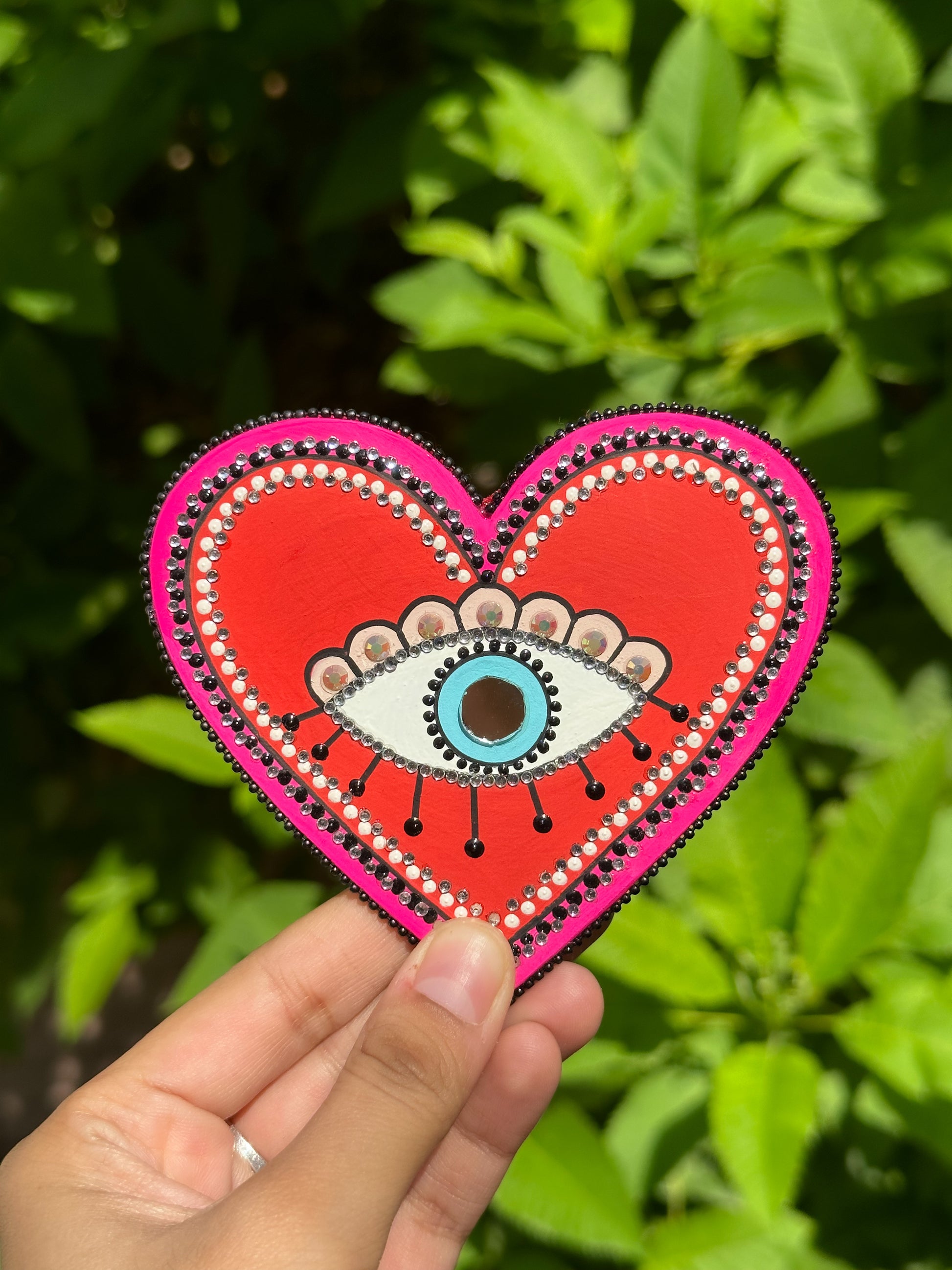 Too Colourful & Artistic EVIL EYE FRIDGE MAGNET with lots of mirror work and vibrant colours. Perfect for gifting as wedding favours or House warming events. Handpainted using vibrant colours ❤️🧡🌼💖💚💙
