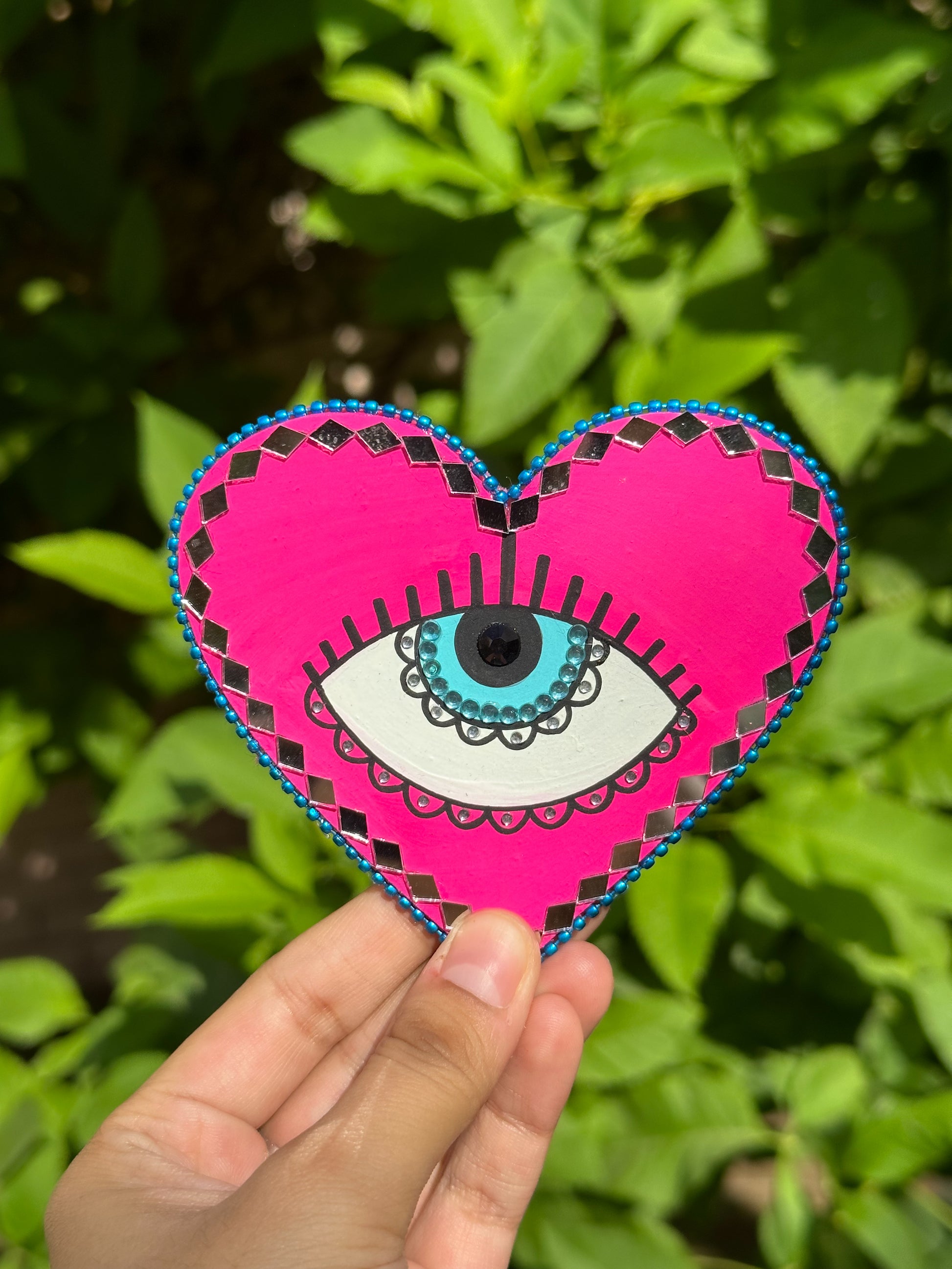 Too Colourful & Artistic EVIL EYE FRIDGE MAGNET with lots of mirror work and vibrant colours. Perfect for gifting as wedding favours or House warming events. Handpainted using vibrant colours ❤️🧡🌼💖💚💙